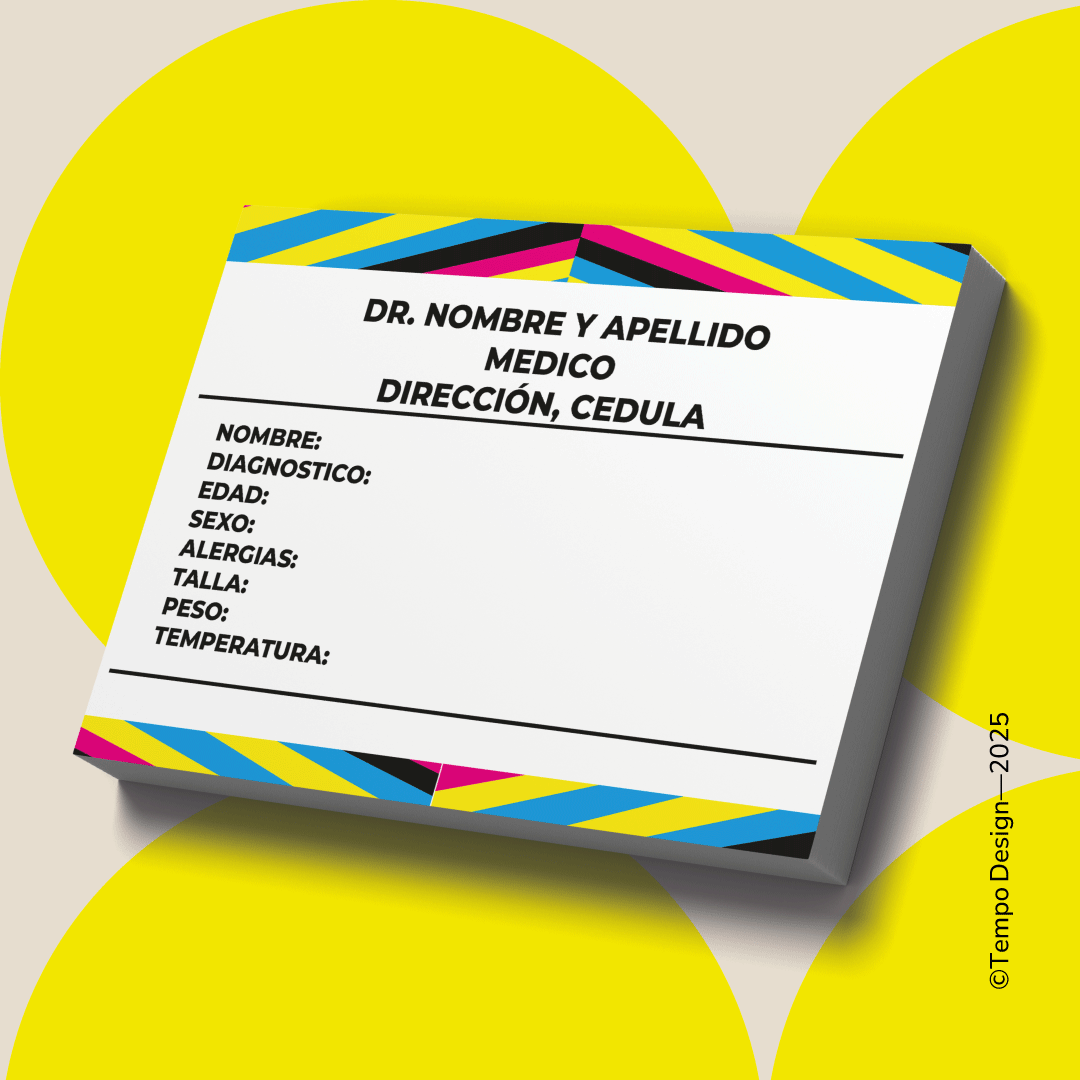 Formato práctico a media carta, impresas a color o blanco y negro. Engomadas en la parte superior para facilitar el desprendimiento hoja por hoja. Ideales para consultorios, clínicas y profesionales de la salud que buscan una presentación funcional y atractiva.